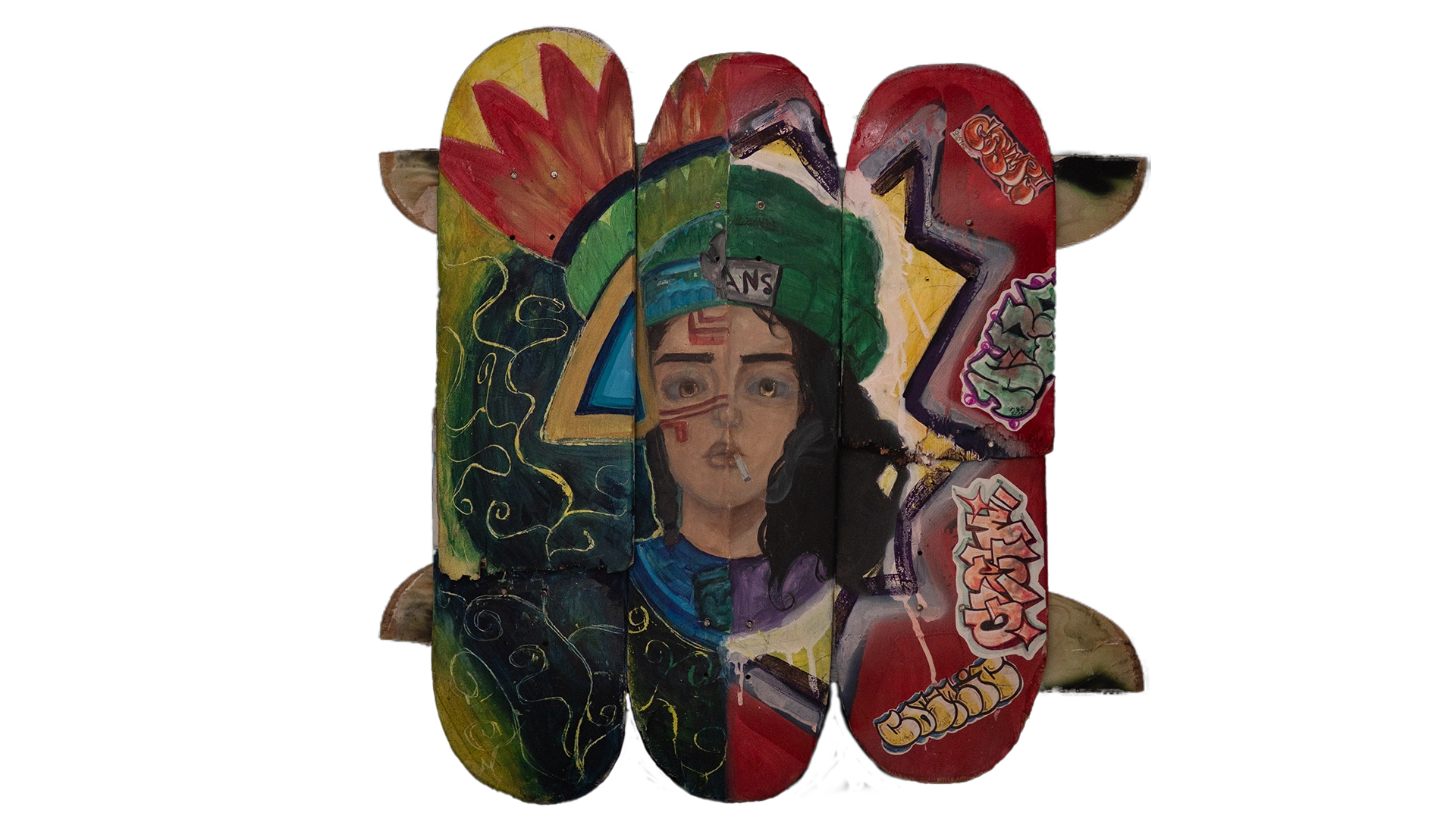 La obra cuenta con colores totalmente diferentes de los lados, demostrando la